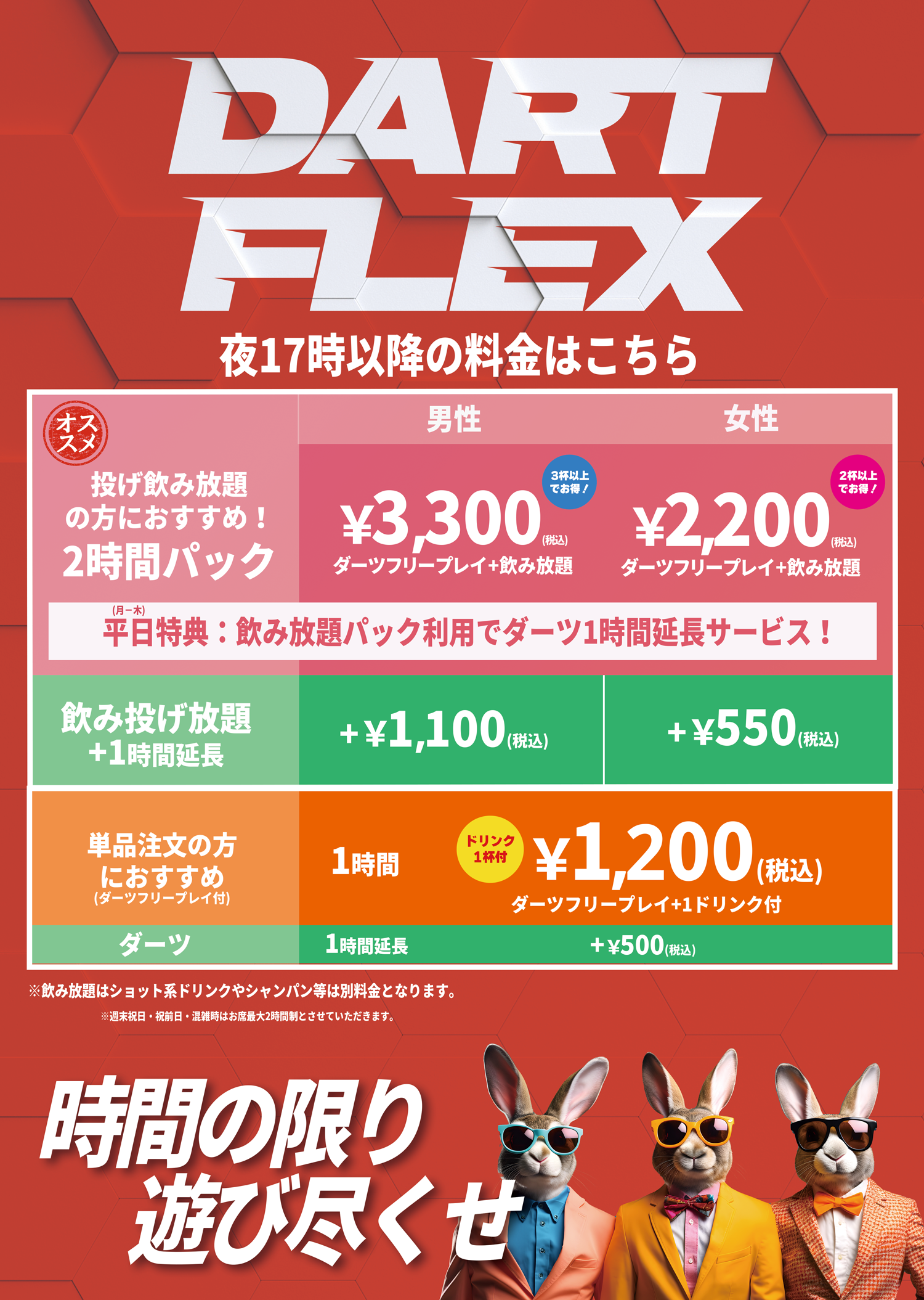 ダーツフレックス横浜西口店に、いつでも気軽に楽しめるお得な新プランができました!
